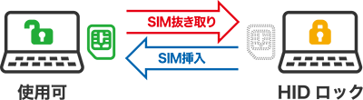 SIMカードの抜き取りや許可されていないSIMカードの使用を検知した場合、不正利用と認識して自動的にパソコンをロックします。