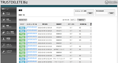 ロックや消去命令後、管理者はTRUST DELETEの管理サーバーからステータスレポートを確認する事ができるため、命令を受信したパソコンがどの様な状態になっているのかを把握し、上司または利用者にその結果を報告できる安心感があります。