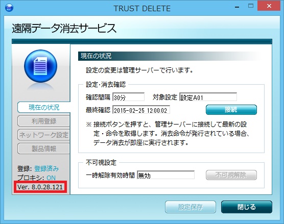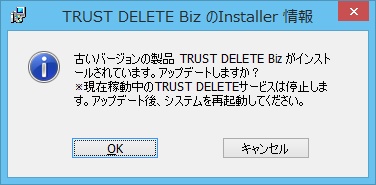 現在ご使用遠隔データ消去サービスのバージョンが古いことを示すメッセージが表示されます。[OK]をクリックします。