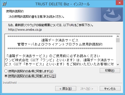 遠隔データ消去サービスのインストールが開始されます。[次へ]をクリックします。