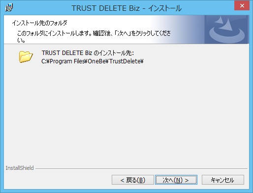 「インストール先のフォルダ」画面が表示されます。インストール先を確認して、[次へ]をクリックします。