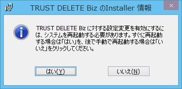 コンピューター再起動の確認画面が表示されます。[はい]をクリックして、コンピューターを再起動します。